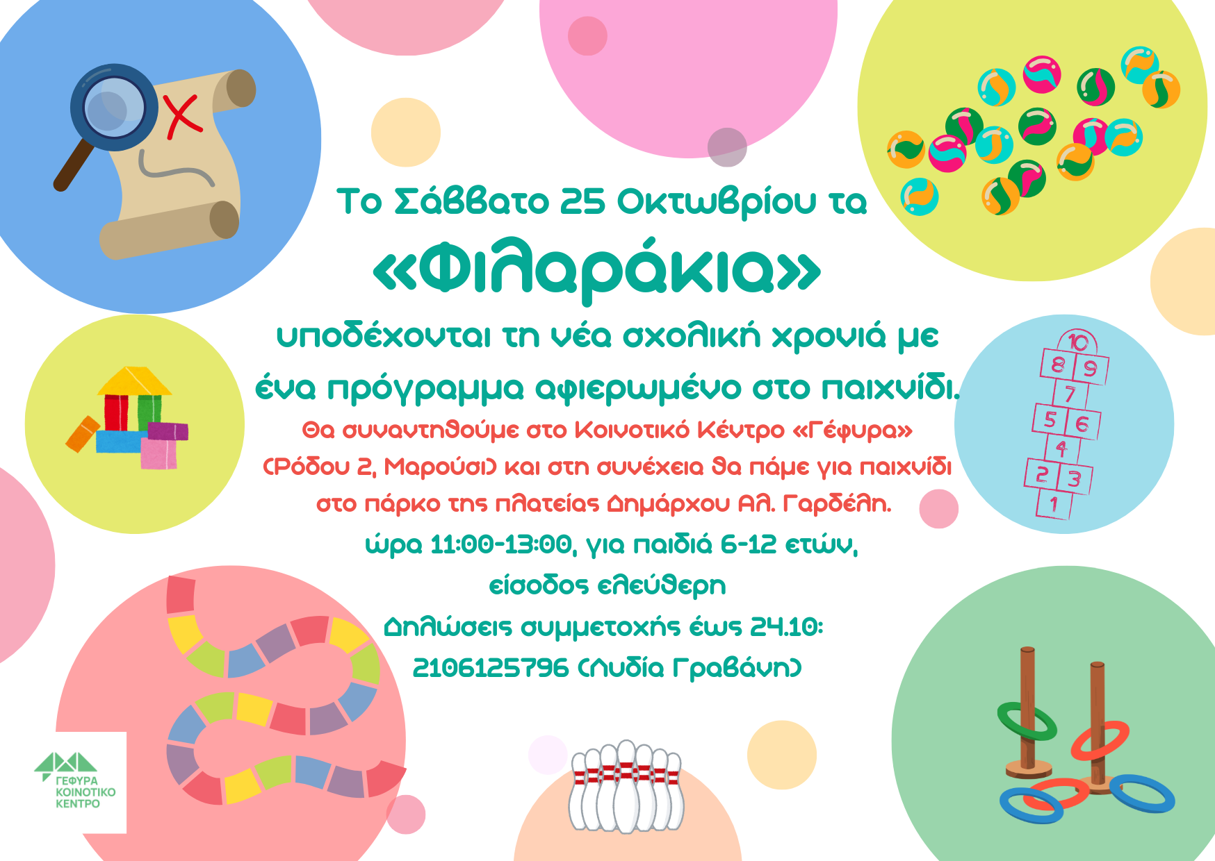 (Ρόδου 2, Μαρούσι) και στη συνέχεια θα πάμε για παιχνίδι στο πάρκο της πλατείας Δημάρχου Αλ. Γαρδέλη.